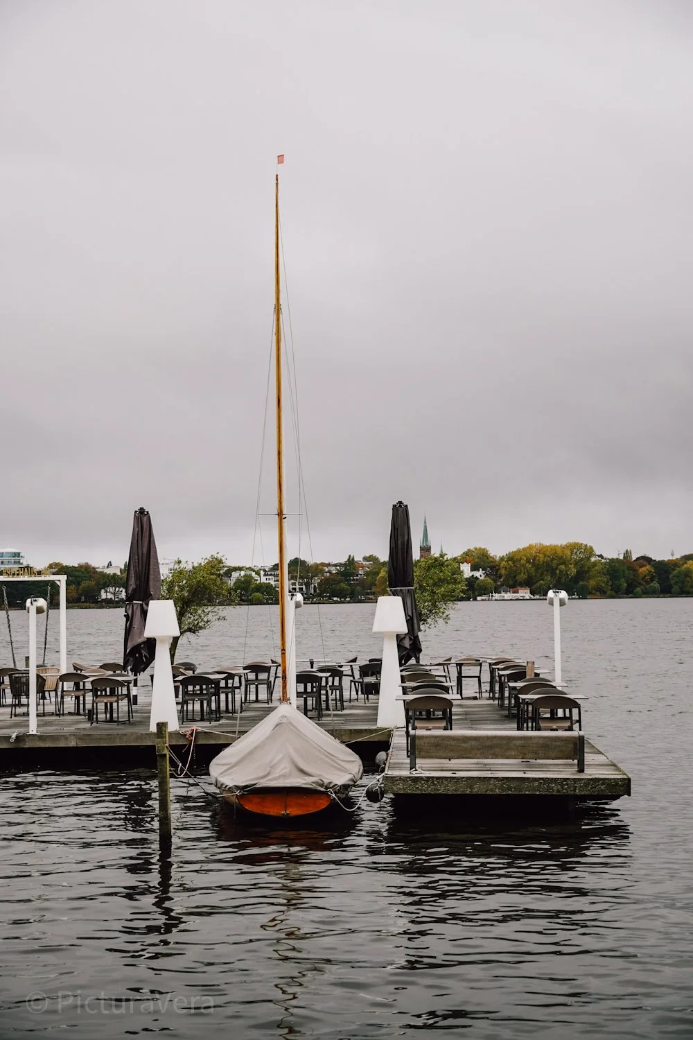 Herbstliche Fotografien aus Hamburg: Innenstadt am Morgen, das Elbufer bei Nacht und St. Georg.