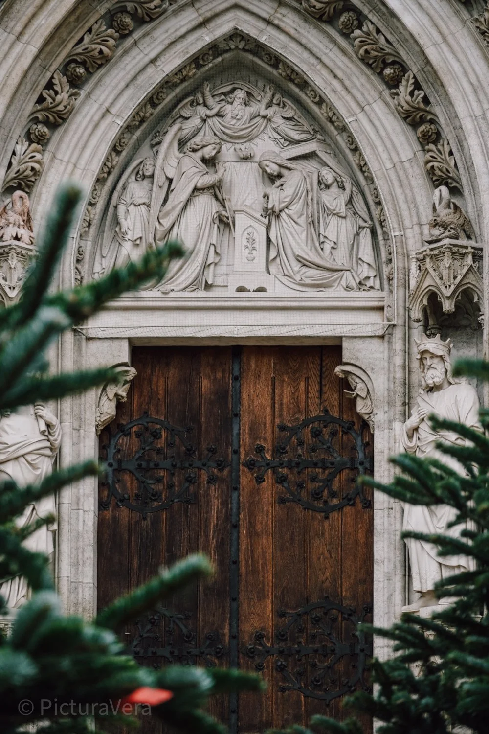 Fotografien aus Wien, in der Vorweihnachtszeit. Weihnachtsmärkte, Würstchenstände und prunkvolle Gebäude.
