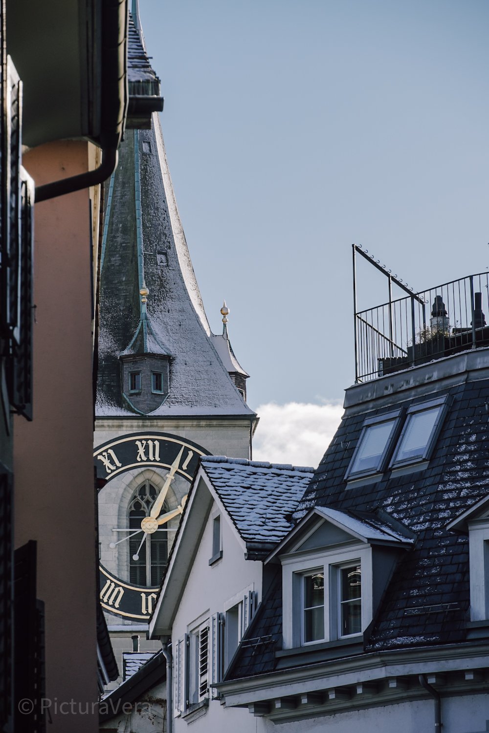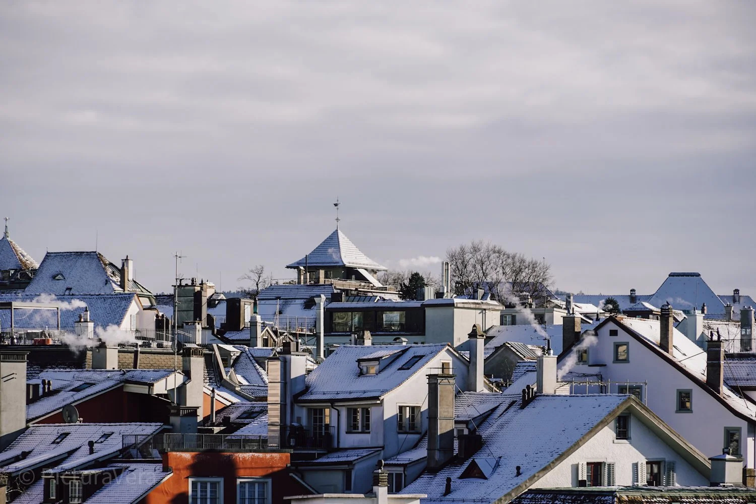 Winterfotografien aus Zürich, mit frischen Neuschnee am ersten Wochenende im neuen Jahr. Verschneite Altstadt, Möwen und ein Aussichtspunkt mit tollem Blick auf die Schweizer Stadt.